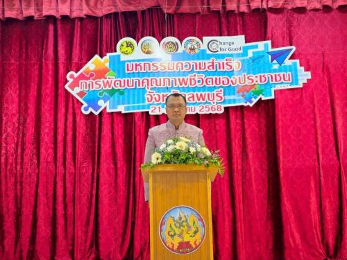 นายประยูร ศิริวรรณ รองผู้ว่าราชการจังหวัดลพบุรี เป็นประธานเปิดงาน "มหกรรมความสำเร็จการพัฒนาคุณภาพชีวิตของประชาชน" จังหวัดลพบุรี ซึ่งจัดขึ้นโดยการบูรณาการความร่วมมือจากหน่วยงานทุกภาคส่วนภายใต้ศูนย์อำนวยการขจัดความยากจนและพัฒนาคนทุกช่วงวัยอย่างยั่งยืน จังหวัดลพบุรี โดยมีหัวหน้าส่วนราชการระดับจังหวัด ภาคีเครือข่าย คณะกรรมการบริหารศูนย์อำนวยการขจัดความยากจนและพัฒนาคนทุกช่วงวัยอย่างยั่งยืน ตามหลักปรัชญาของเศรษฐกิจพอเพียงจังหวัด/อำเภอ (ศจพ.จ. / ศจพ.อ.) เข้าร่วมกิจกรรม จำนวนกว่า 100 คน ในการนี้ นางบัณฑิตา หมื่นพรม พัฒนาการจังหวัดลพบุรี กล่าวรายงานวัตถุประสงค์การจัดโครงการฯ