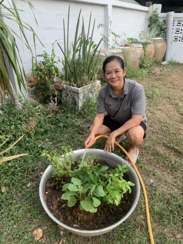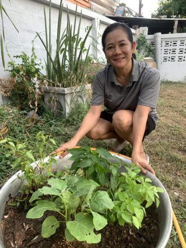 นางพิชญ์สินี จันทร์จวนสุก พัฒนาการอำเภอท่าวุ้ง เครือข่ายผู้นำอาสาพัฒนาชุมชน ร่วมกันขับเคลื่อนกิจกรรมพัฒนาชุมชนโดยน้อมนำแนวพระราชดำริ สมเด็จพระกนิษฐาธิราชเจ้า กรมสมเด็จพระเทพรัตนราชสุดาฯ สยามบรมราชกุมารี สู่การปฏิบัติปลูกผักสวนครัวเพิ่มเติม “ผู้นำทำก่อน ครัวเรือนทำตาม” GOOD & FOOD SECURITY อาทิเช่น มะเขือ พริก ตะไคร้ กะเพรา มะนาว มะกรูด ฯลฯ เพื่อสร้างความมั่นคงทางอาหาร สามารถนำผลผลิตไปประกอบอาหาร เพื่อเป็นตัวอย่างให้กับประชาชน เป็นแหล่งอาหาร อีกทั้งยังสามารถแบ่งปันให้กับประชาชนที่อยู่ใกล้เคียง และเป็นตัวอย่างในการลดรายจ่ายได้